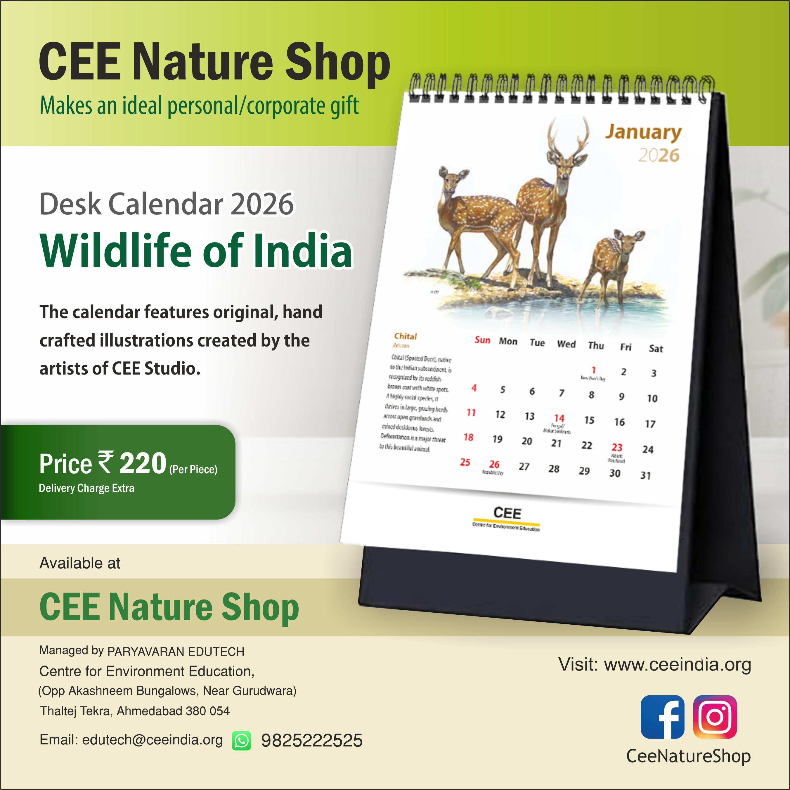 This year’s CEE Desk Calendar (size: 6" height X 10.5" width) celebrates India’s incredible wildlife through original, hand-crafted illustrations created by the talented artists of CEE Studio. Each artwork is a tribute to the diversity, beauty, and magic of India’s natural world — making this calendar not just a desk essential, but a collectible piece of art.